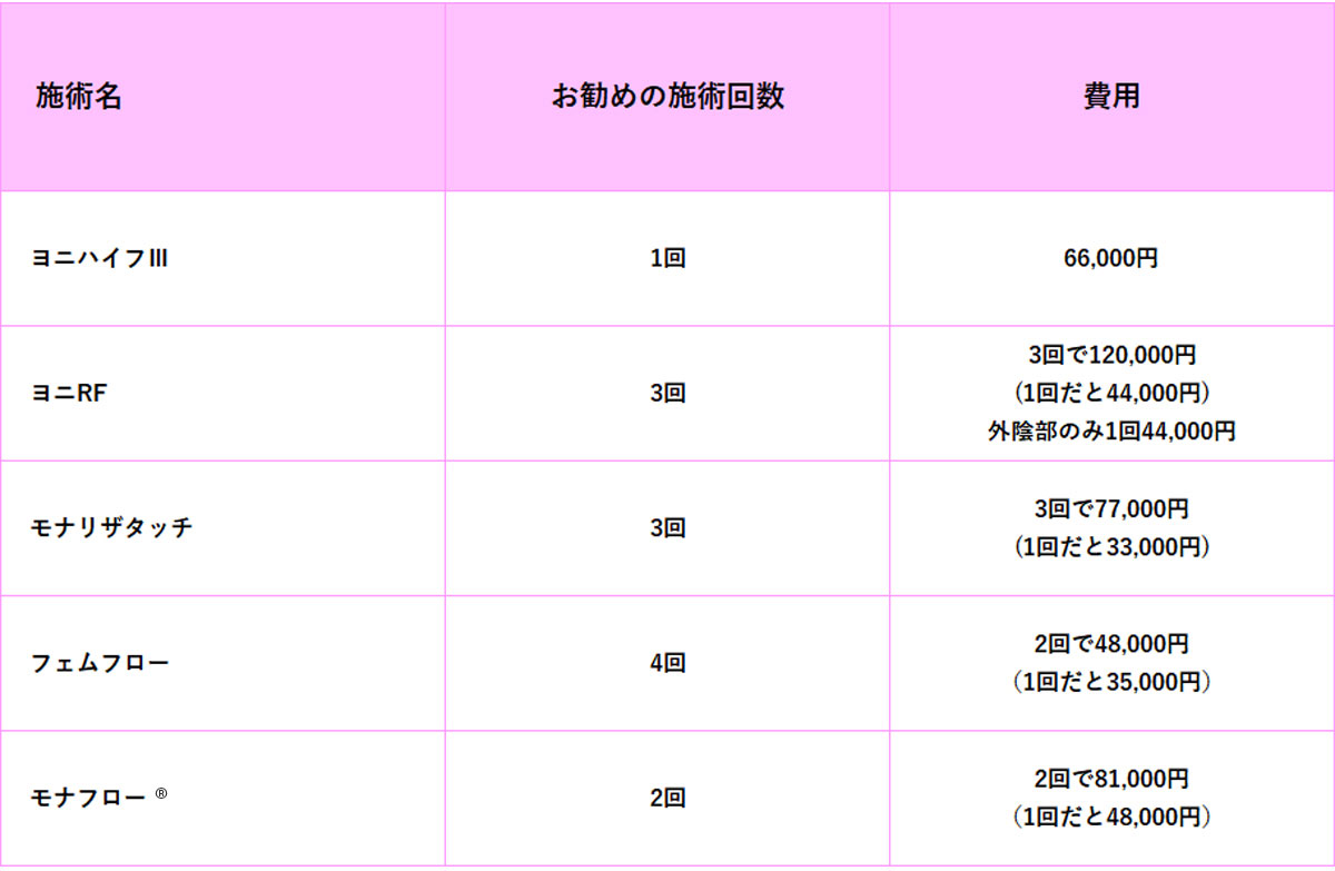 当クリニックでは経膣的ハイフ66,000円(税込)と患者様にとって施術を受けやすい価格で行っております。